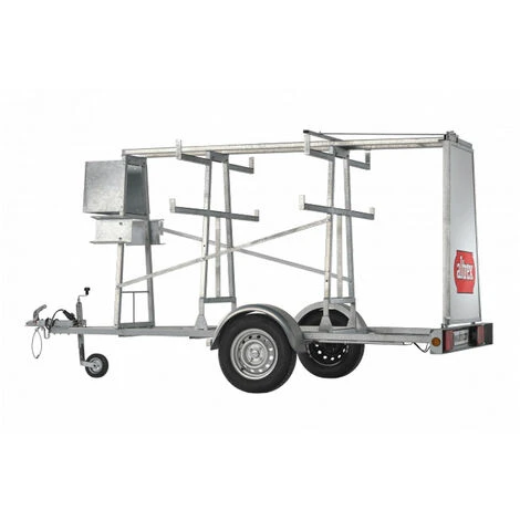 Mit dem Gerüstanhänger De Luxe transportieren Sie Ihr Steigmaterial auf sichere Weise. Von Safe-Quick®-Fahrgerüsten bis zu einer Plattformhöhe von 9,20 m bis zu traditionellen Gerüsten mit einer Plattformhöhe von bis zu 12,20 m.