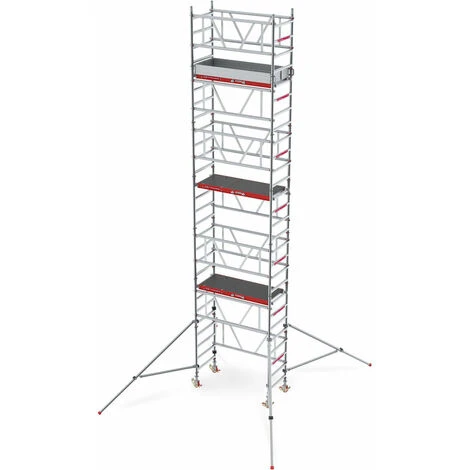 Das clevere Design zwingt den Benutzer, das Fahrgerüst sicher aufzubauen. Schritt für Schritt erreicht es sogar eine Höhe von bis zu 8 Metern Arbeitshöhe. Querträger und ein einzigartiger Aufhängemechanismus in den Plattformen bieten maximalen Halt und erleichtern den Aufbau. Doppelte Geländerstreben, ein praktisches Klauen-System und Doppelstopp-Lenkrollen machen das Fahrgerüst zum stabilsten seiner Art.