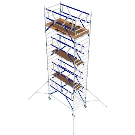 ASC GROUP ASC Rollgerüst AGS Pro 250x75cm Mit Holz-Plattformen Und Doppelseitigem Geländer 8,3m Arbeitshöhe