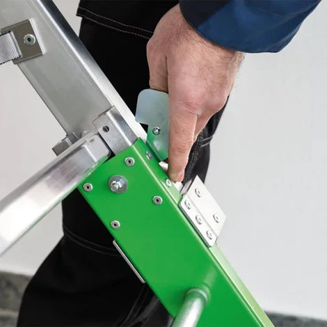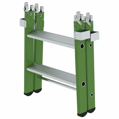Plattformleiter aus Aluminium mit vier optionalen Einsteckteilen zur individuellen Erweiterung.