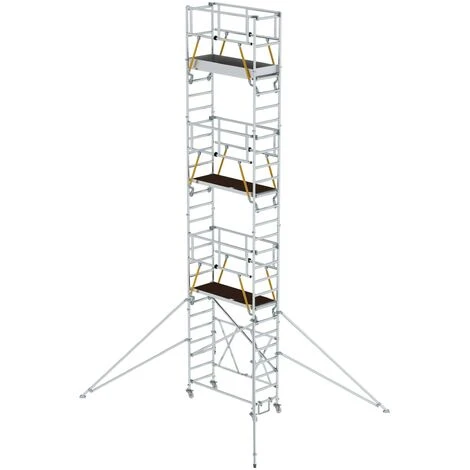 - Rollgerüst aus stabilem Aluminium-Rundrohr mit geschweißten Rahmenteilen