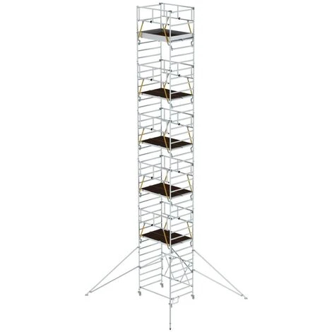 - Rollgerüst aus stabilem Aluminium-Rundrohr mit geschweißten Rahmenteilen