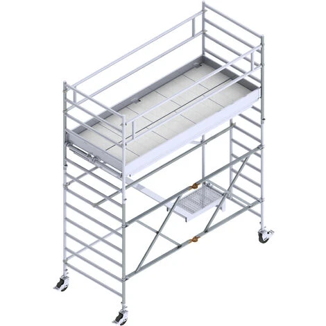 - Rutschsicherer Plattformbelag aus Aluminium-Gitterrost (Rutschklasse R 13). Das Lochraster verhindert liegenbleibenden Schmutz, Schnee, Nässe