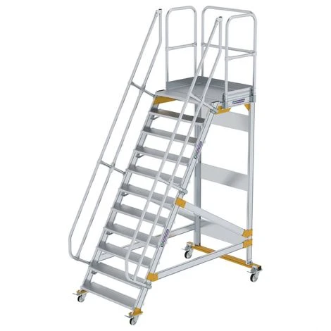- Standard-Lieferumfang mit beidseitigem Handlauf und 3-seitigem Podestgeländer