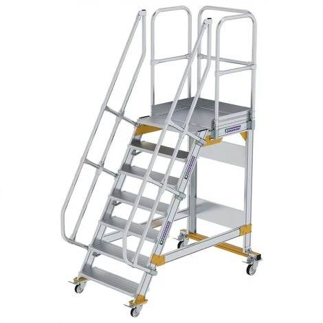 - Standard-Lieferumfang mit beidseitigem Handlauf und 3-seitigem Podestgeländer