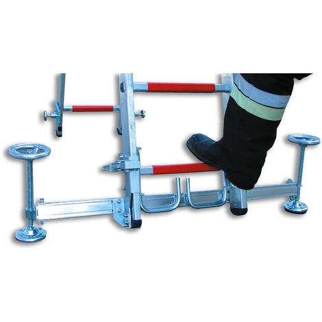 Durch Verwendung der Fußverbreiterung kann die Multifunktionsleiter auf tragfähigem Boden, ohne zusätzliche Sicherung, begangen werden.