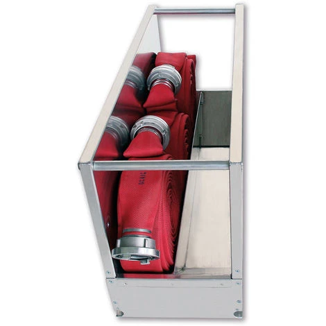 - 2 getrennte Aufbaukästen fassen je 6 doppelt gerollte B-Druckschläuche und werden abnehmbar auf den Rollcontainer aufgesetzt
