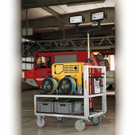 - Das Stativ kann direkt auf dem Rollcontainer betrieben werden.