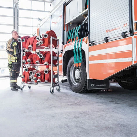 - Je Ebene können sieben C- bzw. sechs B-Rollschläuche gelagert werden