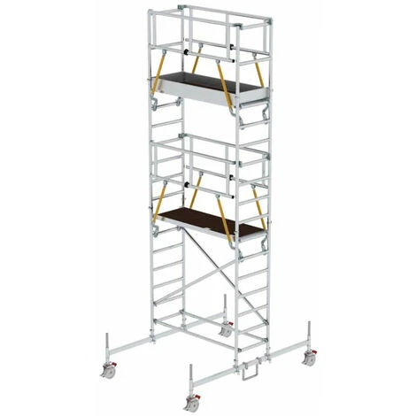- Rollgerüst aus stabilem Aluminium-Rundrohr mit geschweißten Rahmenteilen
