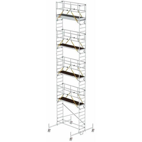 - Rollgerüst aus stabilem Aluminium-Rundrohr mit geschweißten Rahmenteilen