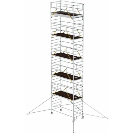 - Rollgerüst aus stabilem Aluminium-Rundrohr mit geschweißten Rahmenteilen