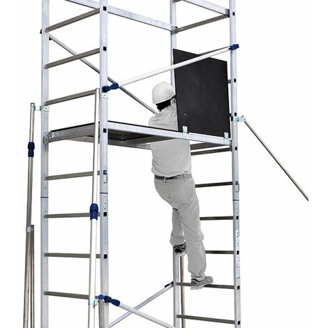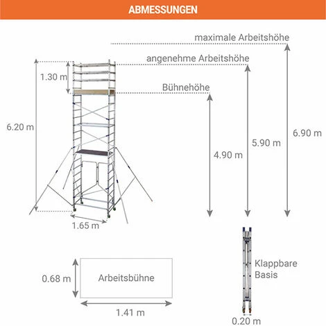 – Aluminiumgerüst mit 4 Festellrollen Ø 125mm