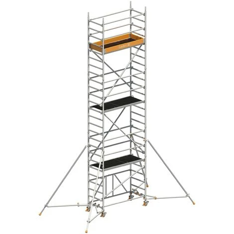 Arbeitsböden aus Aluminium-Rahmen und Sperrholz-Einlage (BFU 100G) auch als Durchstiegbrücke für gefahrlosen Innenaufstieg.