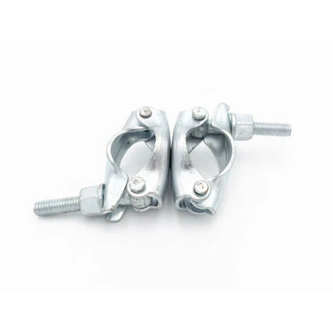 Doppelschelle für das Verbinden von 49 mm Gerüstrohren. Mit diesen Schellen aus gepresstem Stahl können Winkel über 90° geformt werden.