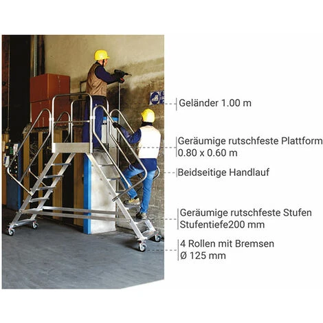 – Stufen und Plattform sind mit einer rutschfesten Oberfläche ausgestattet, um das Risiko von Arbeitsunfällen zu verringern
