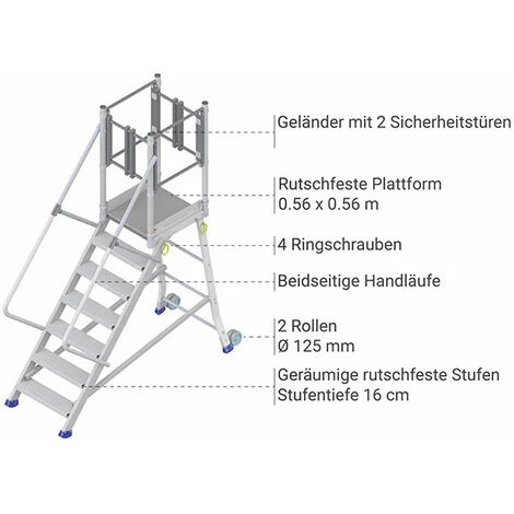 – Rutschfeste Plattform, Plattformabmessungen 0.56 x 0.56m.