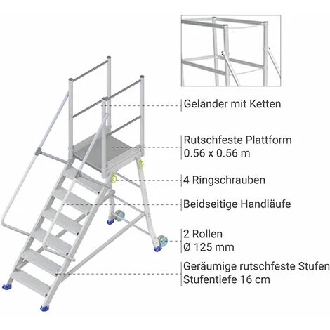 – Rutschfeste Plattform, Plattformabmessungen 0.56 x 0.56m.