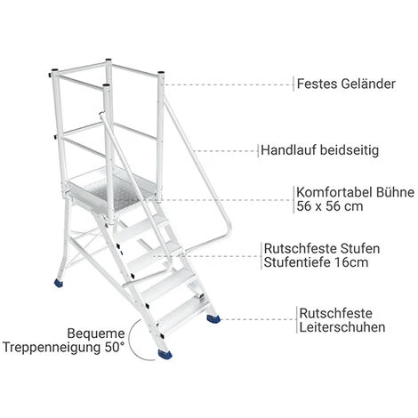 – 16 cm tiefe Stufen, Treppensteigung 50° für optimalen Komfort.