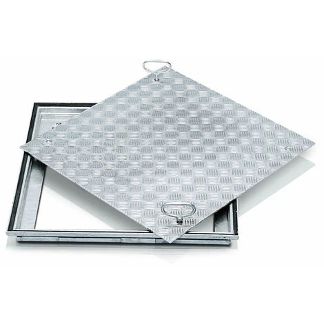Eine perfekt angepasste Optik bieten die Schachtabdeckungen mit wählbarer Oberfläche durch bauseitige Füllung der Deckelwanne mit dem gleichen Material wie der übrige Bodenbelag (Platten, Fliesen, Teppich oder Pflastersteine). Für geringere Belastungen von bis zu 1,5 t bieten die Schachtabdeckungen mit Deckelplatte die richtige Lösung. Die Deckelplatte ist aus geriffeltem, rutschfestem Aluminium bzw. Tränenblech aus Stahl, feuerverzinkt oder V2A (1.4301), gebeizt und passiviert. Der Rahmen ist aus feuerverzinktem Stahl bzw. Edelstahlprofil V2A (1.4301). pp